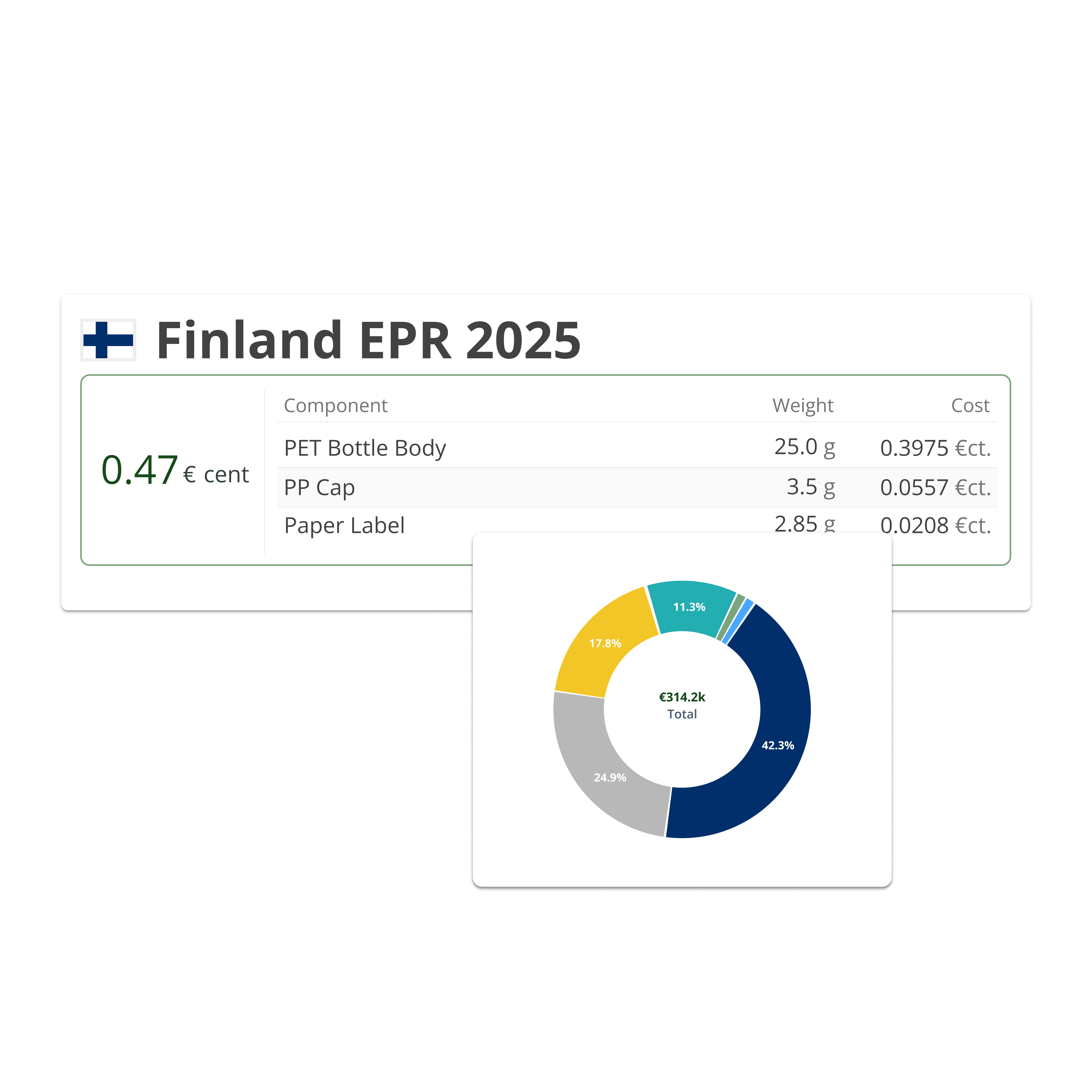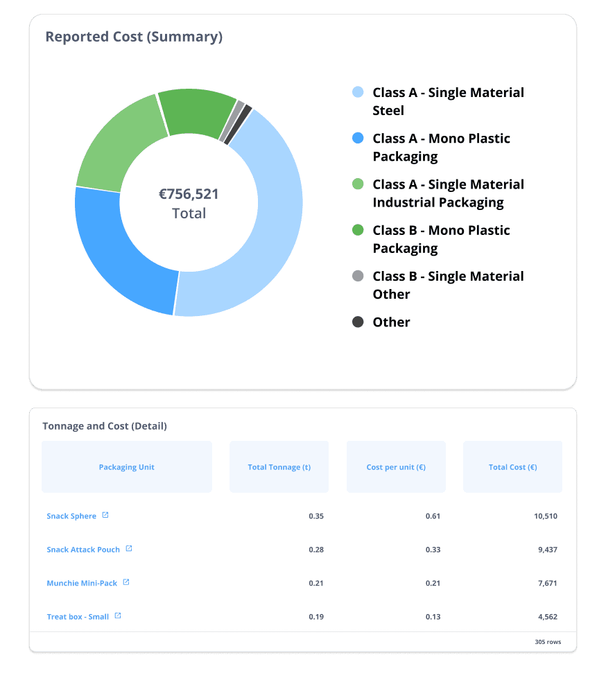 EPR costs for your packaging units are then automatically calculated based on the Finnish guidelines. displayed through an interactive dashboard.