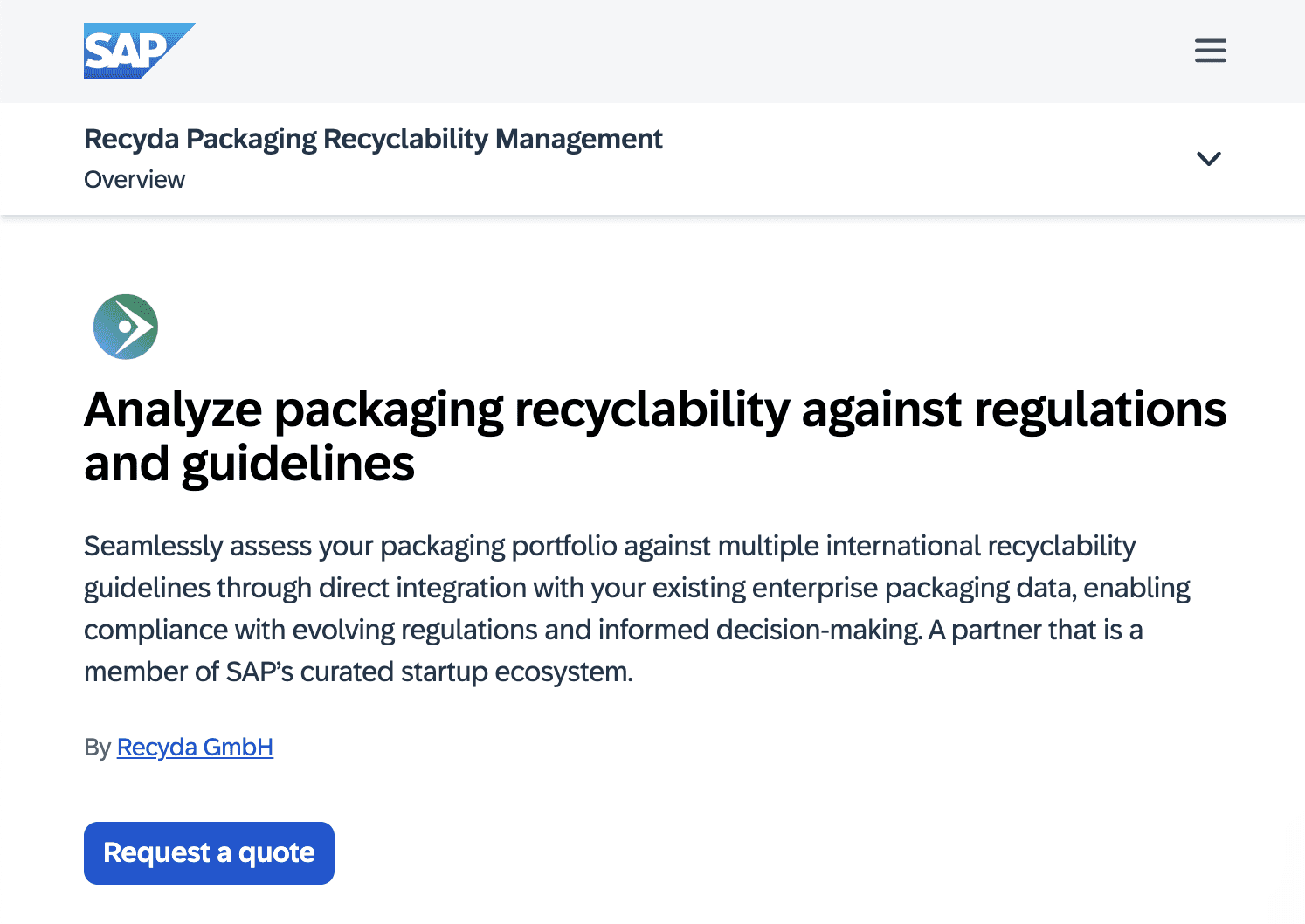 Seamlessly assess your packaging portfolio against various international recyclability guidelines through direct integration with your existing enterprise packaging data in SAP RDP.